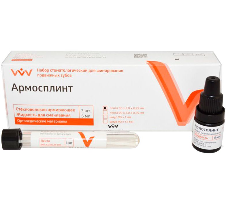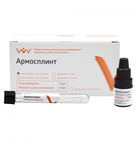 Стекловолокно «Армосплинт» представляет собой ленту специального высокомодульного плетения. Основа ленты - стекловолоконные нити, оплетенные полиэфирными микроволокнами (ширина ленты 2,0 и 3,0 мм, толщина - 0,25 мм). Лента силанизирована для улучшения связи с композитом.