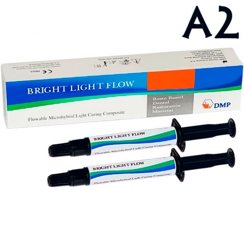 Bright Light Flow A2 (Брайт Лайт флоу) - текучий микрогибридный композитный реставрационный материал. Средний уровень текучести, тиксотропность обеспечивают удобство, точность и простоту применения.