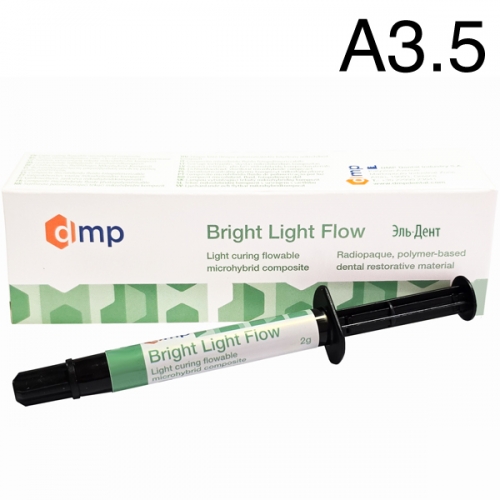 Bright Light Flow A3.5 (Брайт Лайт флоу) - текучий микрогибридный композитный реставрационный материал. Средний уровень текучести, тиксотропность обеспечивают удобство, точность и простоту применения.