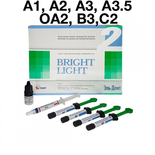 Bright Light НАБОР: 7 шприца х4,5г. (А1,А2,А3,А3,5,OA2,В3,С2), Etching gel 3мл., Single bonding 3мл., принадлежности, DMP