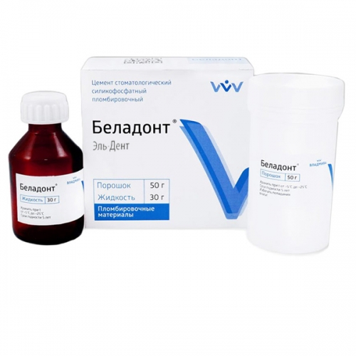 Беладонт силикофосфатный цемент, 50 г + 30 г предназначен для пломбирования фронтальных и боковых зубов в случаях, если эстетические требования не являются приоритеными, для пломбирования зубов, подлежащих закрытию коронками, а также в детской стоматологии для пломбирования молочных зубов.