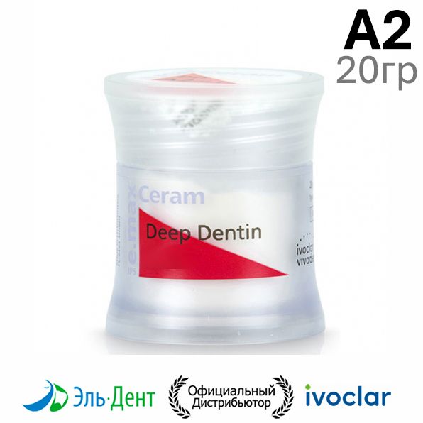 IPS e.max Ceram Deep Dentin дип-дентин, цвет A2, 20 г с живой флюоресцентностью, повышенной опаковостью и насыщенностью цвета позволяет создать основной цвет зуба даже при работе очень тонкими слоями, а реставрации благодаря естественности цвета имеют эстетичный внешний вид. Он также служит для усиления насыщенности цвета, а также для создания гармоничного цветового перехода от промежуточной части мостовидного протеза к десневой части, от десны к шейке зуба.
