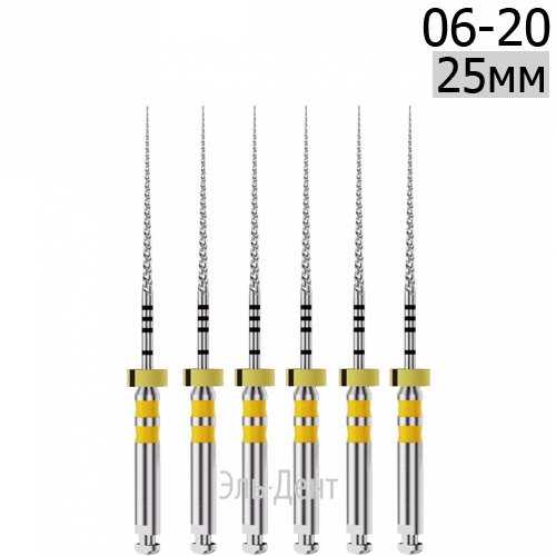 DK-Files (ХВОСТОВИК 15ММ), 25мм, размер 06-20, машинные файлы, никель-титан, (6шт.). Eurofile