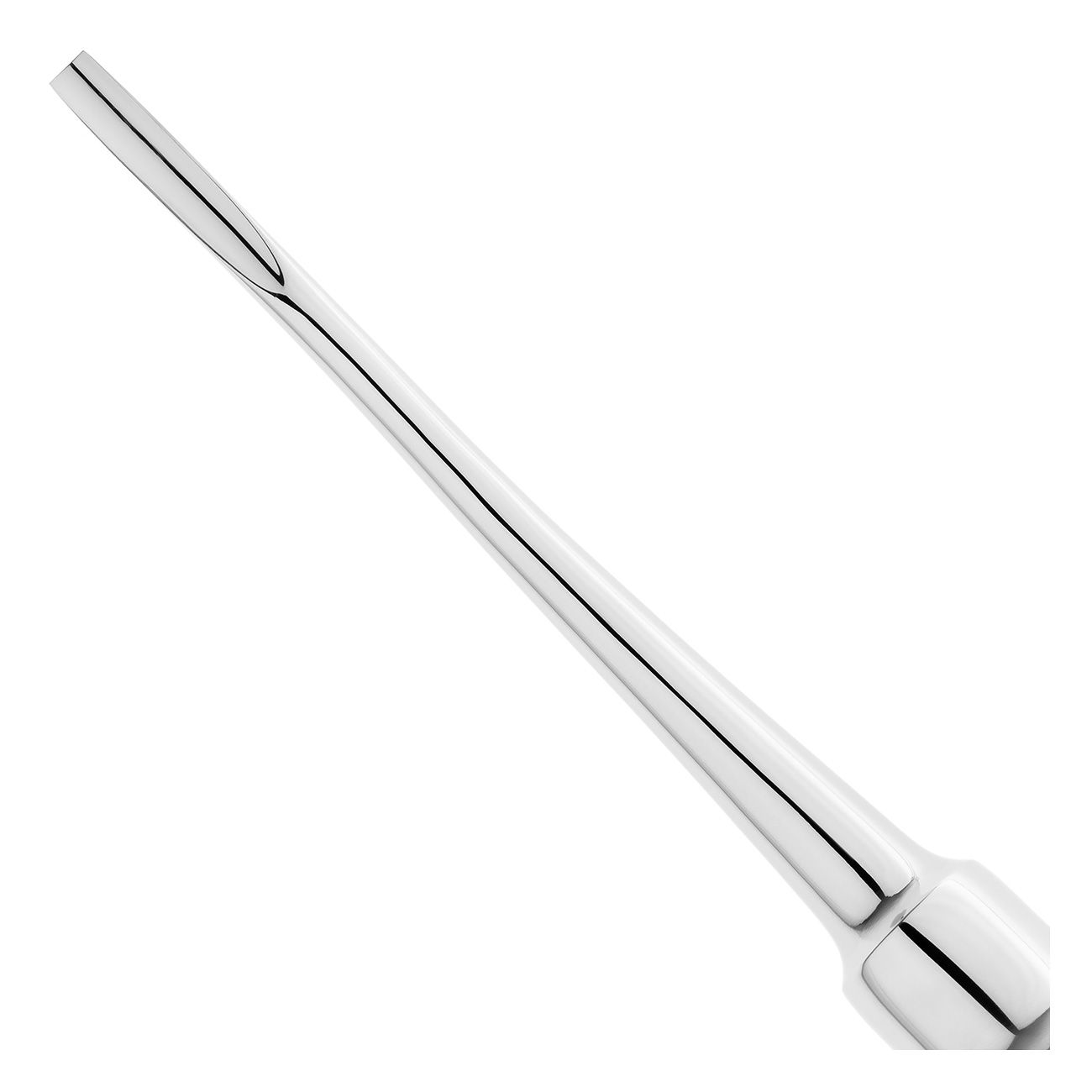 Элеватор HLW 13-9B Bein-Bajonett 3 мм, производства немецкой компании HLW Dental Instruments, предназначен для удаления корней и зубов на нижней челюсти. Щечка инструмента выполнена в форме штыковидного изгиба с шириной рабочей части 3 мм. Поверхность щечки элеватора, обращенная в момент экстракции к корню зуба, имеет желобовидное углубление и прямоугольную форму. Изогнутый инструмент удобен в использовании. Укороченная ручка элеватора имеет грани, которые предотвращают скольжение руки в перчатке и способствуют проведению операции.