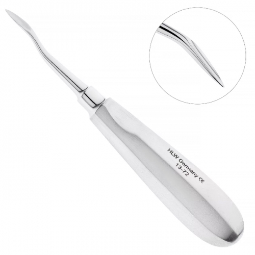 Штыковидный элеватор производства немецкой компании HLW Dental Instruments используется для удаления корней и зубов на верхней и нижней челюсти.