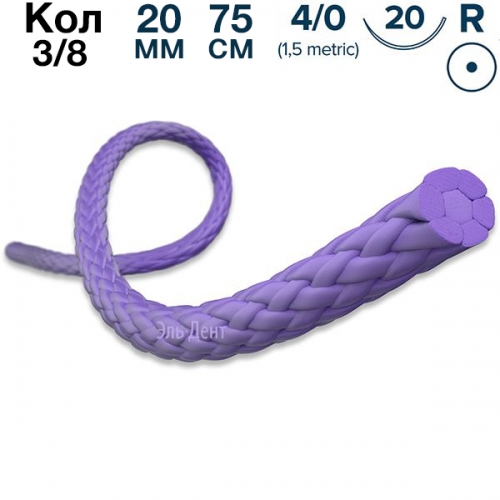 Материал хирургический шовный рассасывающийся стерильный "ELCRYL", 4-0 (1.5), 75 см, игла 20 мм, 3/8, колющая, фиолетовая, ELEMAAR.