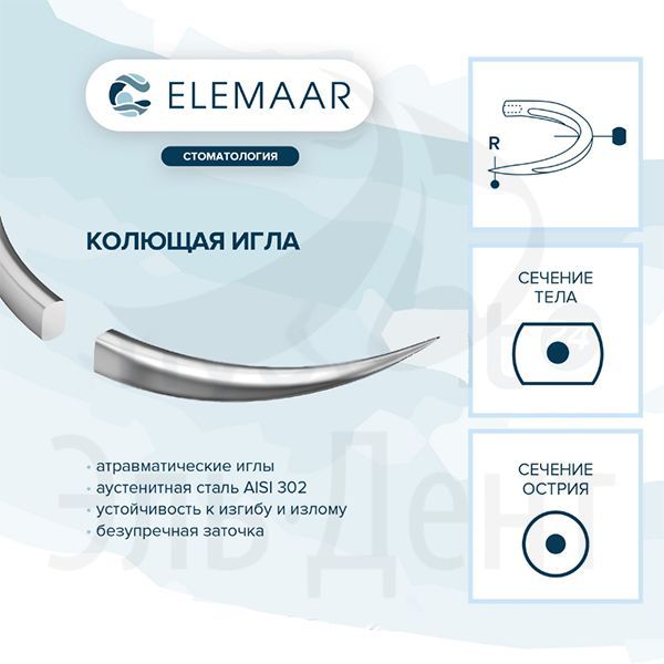Материал хирургический шовный нерассасывающийся стерильный "ELLEN", 5-0 (1), 75 см, игла 16 мм, 1/2, колющая, голубая, ELEMAAR.