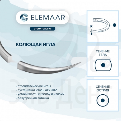 Материал хирургический шовный рассасывающийся стерильный "ELMONQ", 5-0 (1), 75 см, игла 13 мм, 3/8, колющая, лиловая, ELEMAAR.