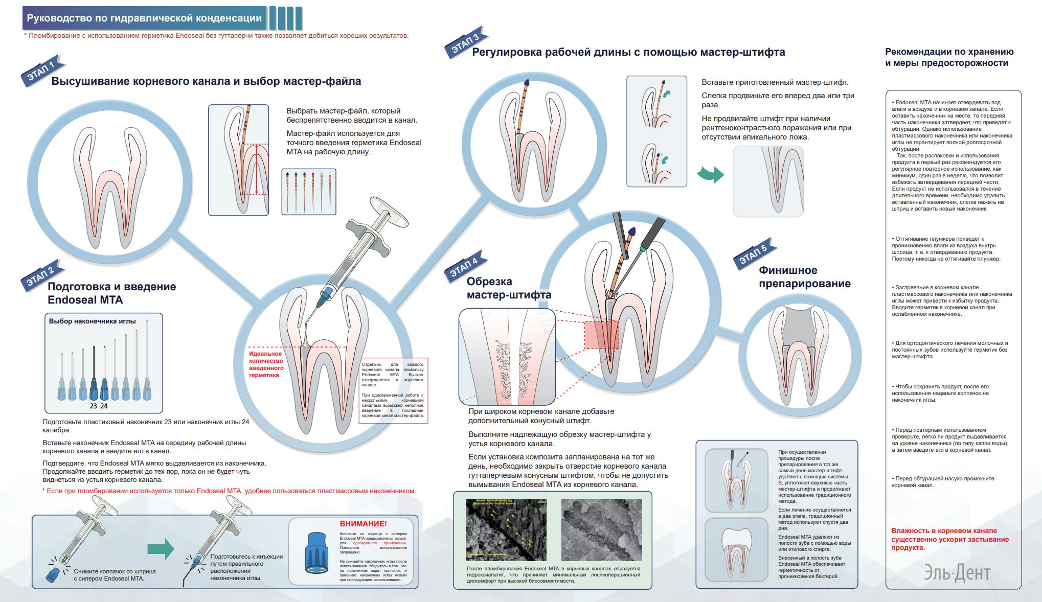ENDOSEAL MTA (ЭндоСил МТА) - это силер для пломбирования корневых каналов на основе пуццоланового цемента, обладающий превосходными физическими и биологическими свойствами MTA. Он предварительно смешан и загружен в шприц, что позволяет заполнять корневой канал, не требуя смешивания компонентов, в отличие от других силеров. Силер обладает исключительной текучестью, что позволяет заполнять систему корневых каналов, включая дополнительные и боковые. Он не содержит эвгенола и не препятствует адгезии внутри корневого канала.