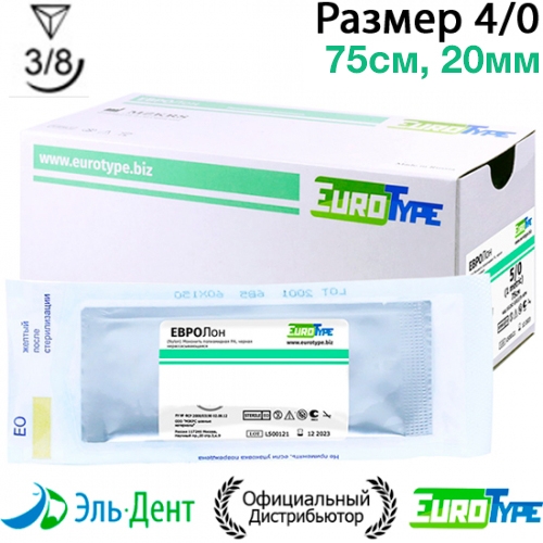 ЕвроЛон 4/0, 75см, 20мм, обр.реж.3/8, 12шт.-синтетический монофиламентный нерассасывающийся шовный материал из полиамида