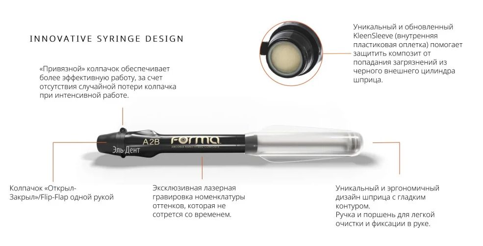 Композит FORMA удовлетворит требования даже самого придирчивого пользователя, независимо от индивидуальных предпочтений в технике реставраций, свойств материала и уровня подготовки специалиста.