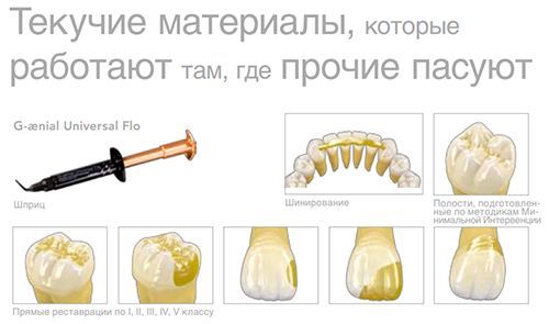 Материал G-aenal Universal Flo GC предназначен для прямой реставрации фронтальных и боковых зубов.