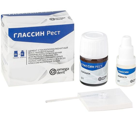 ГЛАССИН Рест – это стеклополиалкенатный (стеклоиономерный) рентгенконтрастный пломбировочный материал, применяющийся в стоматологической практике при замещении зубной ткани в кариозных полостях III и V классов, пломбировании некариозных поражений, замещении ткани в полостях молочных зубов (всех классов), а также использующийся в качестве подкладки под все виды пломб.