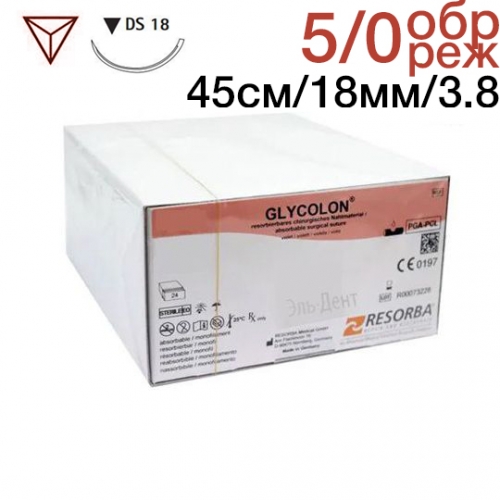 Описание: Гликолон, 5/0, 45см, 18мм, об./реж 3/8, 24 шт, Материал шовный хирургический, фиолетовая нить, РВ41421, Resorba