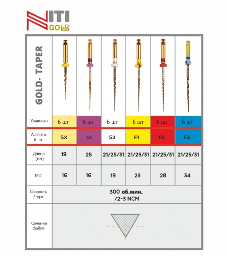 Описание: Gold-Tаper F3, 25мм (6шт.)-машинный инструмент для обработки корневых каналов, Геософт