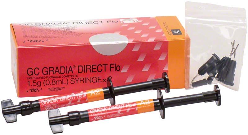 GC Gradia Direct Flo – это текучий светоотверждаемый гибридный рентгеноконтрастный композит, созданный специально для использования в комбинации с GC Gradia Direct. Благодаря специфическим физическим свойствам, оптимальной текучести и возможности прямого нанесения с помощью шприца этот материал идеален для изготовления прокладок под композитные реставрации.