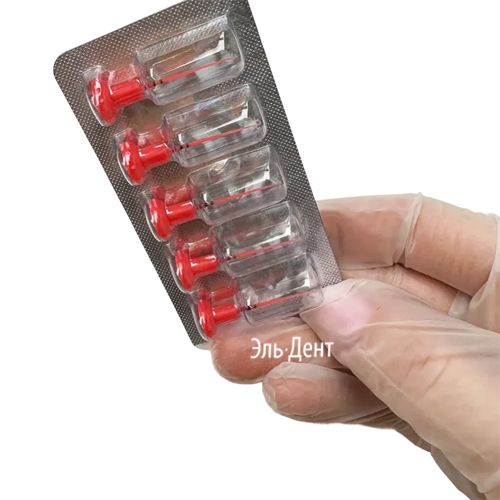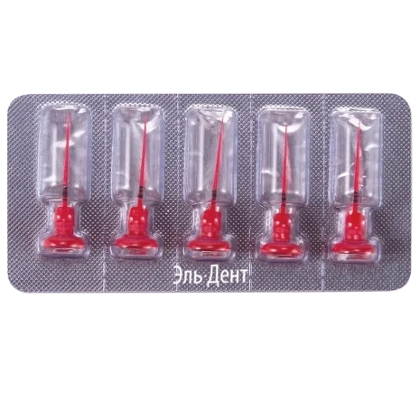 Иглы-насадки 25.02 (красные) применяются для работы в узких или ранее облитерированных корневых каналах.