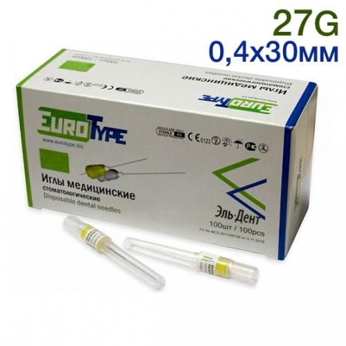 Описание: Иглы карпульные 30мм х 0,4 (27G)/100шт./EuroType
