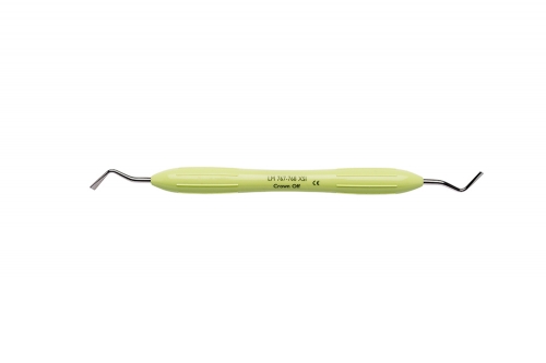 Инструмент LM 767-768 Crown Off предназначен для снятия всех типов коронок в ротовой полости. Тело инструмента имеет изгиб в двух местах, рабочая часть наклонена на 45° по отношению к телу инструмента.
