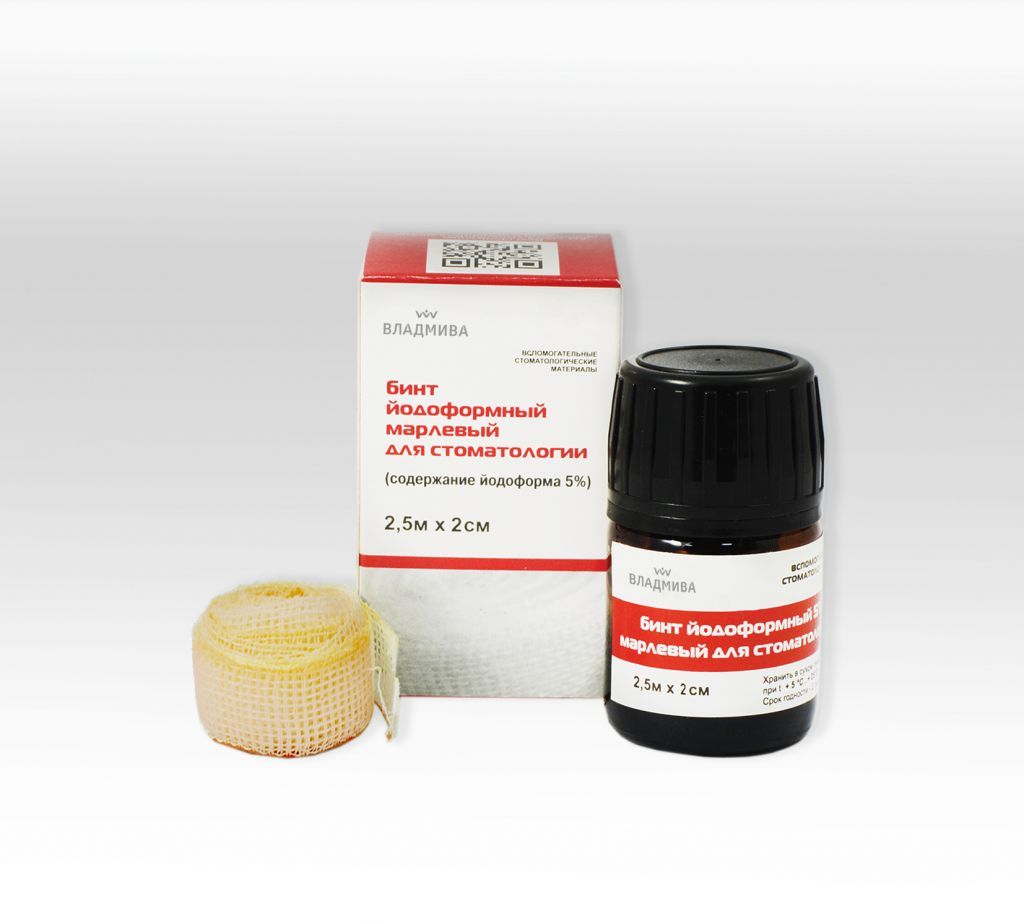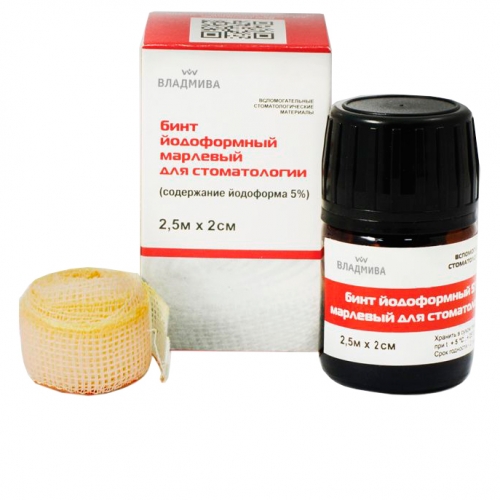 Иодоформный бинт 2,5м х 20 мм, ВладМиВа