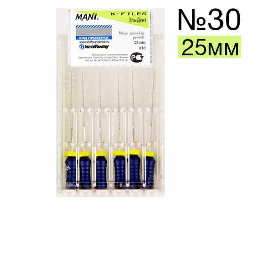 K-Files MANI (К файлы Мани) — это ручной режущий стоматологический эндодонтический инструмент со спиральной нарезкой рабочей части. Материал рабочей режущей части - нержавеющая сталь, материал рукоятки – пластик (полибутилентерефталат).