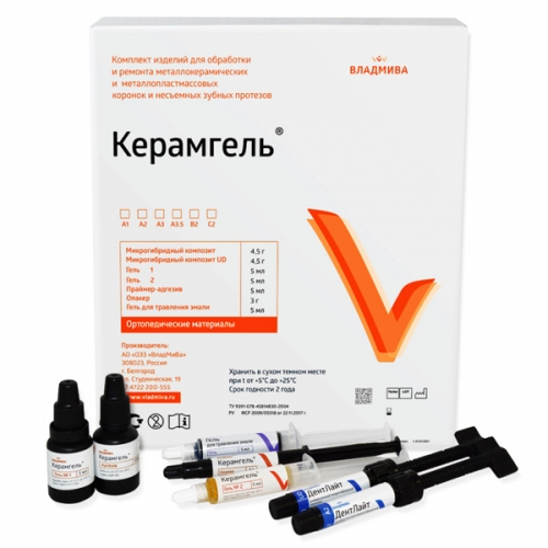 Описание: Керамгель с праймером-адгезив, омопакером, универсальным композитом, композитная паста А2, ВладМиВа