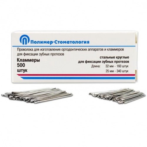 Кламмеры стальные круглые для фиксации зубных протезов Ø1,2 мм. длина: 32 мм.(160 шт.), 25 мм. (340 шт.) /500 шт./Полимер-Стоматология