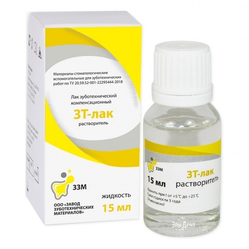 Лак зуботехнический компенсационный "ЗТ"- лак растворитель 15 мл.,