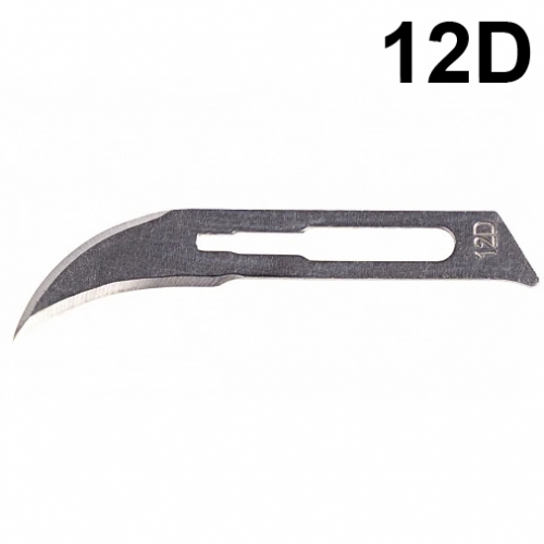 Одноразовые стерильные хирургические лезвия для скальпеля №12D. Небольшое серповидное лезвие, обе стороны заточены, заостренный наконечник. Хирургические лезвия STEA предназначены для рассечения мягких тканей и сосудов при различных хирургических операциях. Произведены из высокоуглеродистой медицинской стали, стерилизованы радиационным методом. Лезвия индивидуально упакованы в фольгу, ориентированы в одну сторону и уложены в транспортную тару. Совместимы с ручкой для скальпелей №3.