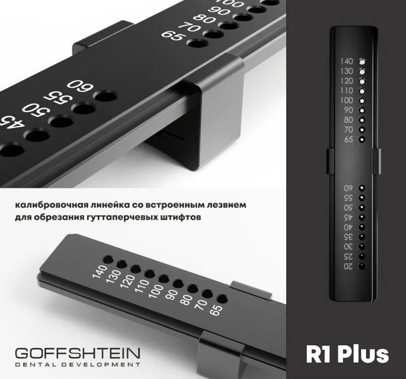 Описание: Линейка эндодонтическая калибровочная R1 Plus, для калибровки и обрезания гуттаперчевых штифтов. Геософт Эндолайн