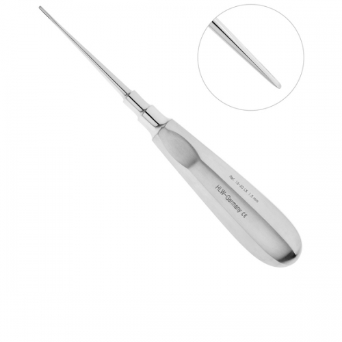 Люксатор HLW 13-20LX прямой, 1,5 мм применяется для атравматичного удаления корней и зубов на нижней и верхней челюсти, немецкой компанией HLW Dental Instruments. Очень узкая, тонкая и острая щечка, а также удлиненный соединительный стержень инструмента позволяют очень глубоко ввести люксатор между корнем зуба и костной тканью лунки, легко разрезать периодонтальную связку и аккуратно извлечь корень или зуб из лунки. Стандартная ручка люксатора имеет грани на поверхности и выемки под пальцы с двух сторон, что препятствует скольжению фаланг пальцев в перчатке. Такая конструкция ручки очень удобна в использовании и способствует успешному проведению операции.
