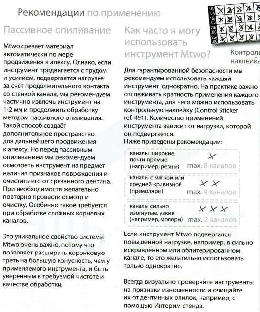 М2, Mtwo files (М2, Мту файлы) — это механические (роторные) эндодонтические инструменты, предназначенные для эндодонтического лечения осложненного кариеса, обладают двумя лезвиями и каждое образует длинную, почти вертикальную спираль, это обеспечивает лучший контроль над продвижением инструмента. Режущая кромка очень острая, что также усиливает режущие качества и обеспечивает прохождение вдоль канала.
