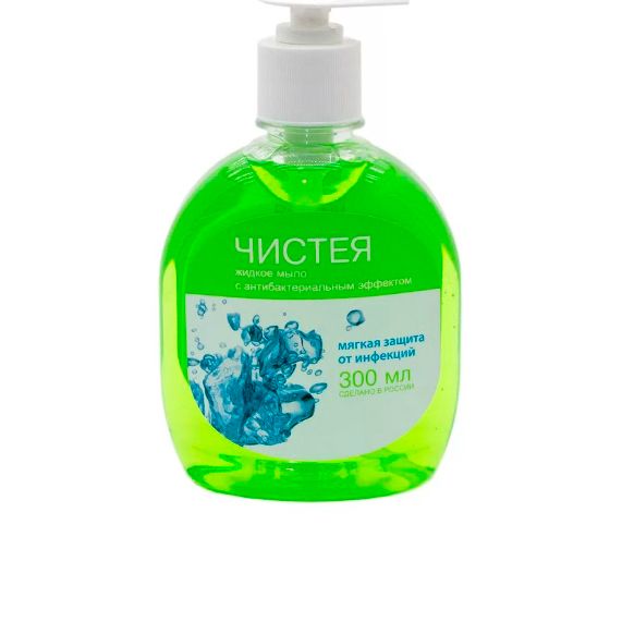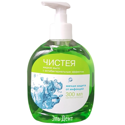Жидкое антибактериальное мыло Чистея обладает бактерицидными свойствами, а так же содержит специальные добавки, которые смягчают и увлажняют кожу рук, оказывая противовоспалительное и регенерирующее действия.