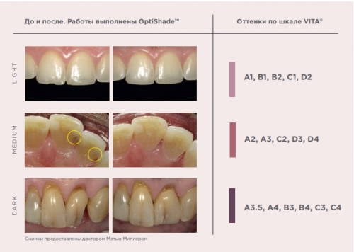 До и после. Работы выполнены OptiShade™ Оттенки по шкале VITA