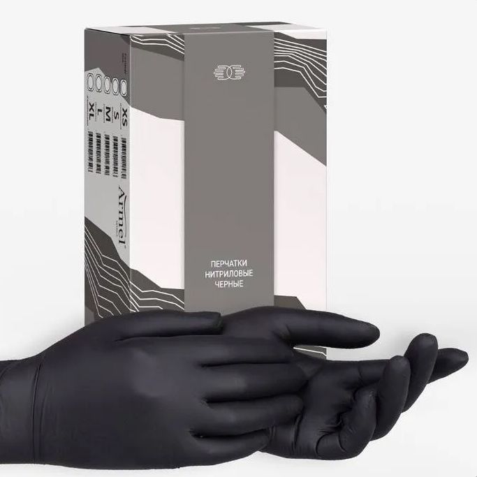 Описание: Перчатки Нитриловые Armel (Health line) Черные S (6/7) смотровые, 100 шт. Safe&Care