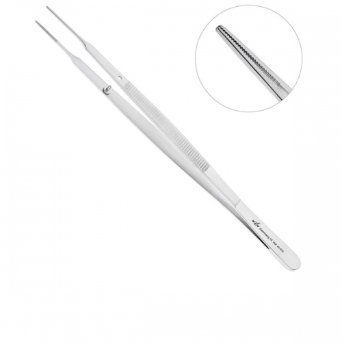 Пинцет HLW 22-21A анатомический Gerald, 18 см предназначен для захвата, удерживания самых разных приспособлений, перемещения вспомогательных материалов и при проведении стоматологических манипуляций в полости рта. Узкие, вытянутые и тонкие рабочие части инструмента позволяют осуществлять прецизионные манипуляции и обеспечивают максимальный обзор рабочего поля. Благодаря ретенционному узору на внутренних поверхностях браншей пинцет плотно захватывает и удерживает мягкие ткани в ротовой полости. Стоппер на внутренней поверхности инструмента способствует плотному смыканию рабочих частей пинцета и предотвращает их расхождение друг относительно друга. Мелкая поперечная насечка на наружной поверхности инструмента препятствует скольжению пальцев в перчатке и не мешает выполнению точных движений.