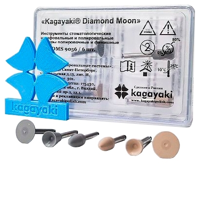 Kagayaki Diamond Moon - это двухшаговая полировочная и финишная система для проведения финишной обработки механическим способом поверхности реставрации с предварительно сформированными контурами.