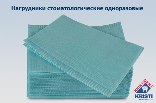 Нагрудники стоматологические «КРИСТИДЕНТ» Премиум (2+1) (3-х слойный), одноразовые, максимально защищают одежду пациента от загрязнения во время стоматологического лечения и сопутствующих процедур благодаря рельефному горизонтальному рисунку.