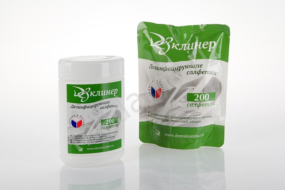 Салфетки Дез Клинер предназначены для применения в лечебно-профилактических, учреждениях в том числе в стоматологических кабинетах для обработки:поверхностей жесткой мебели (подголовники, подлокотники кресел и др.);поверхностей медицинских приборов и оборудования (в т.ч. поверхности аппаратов искусственного дыхания и оборудования для анестезии, стоматологические наконечники, зеркала, для очистки предметных стекол от иммерсионного масла);осветительной аппаратуры, жалюзи и т.п.