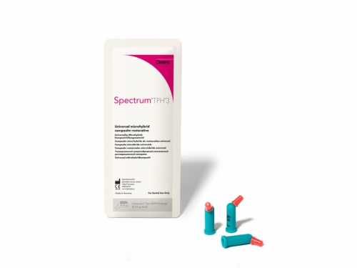 Spectrum ТРН 3 (Спектрум ТПХ3) - это светоотверждаемый, рентгеноконтрастный субмикронный гибридный композит для реставраций передних и боковых зубов. Композит расфасован в компьюлы или традиционные шприцы и имеется в различных цветовых оттенках по шкале VITA.