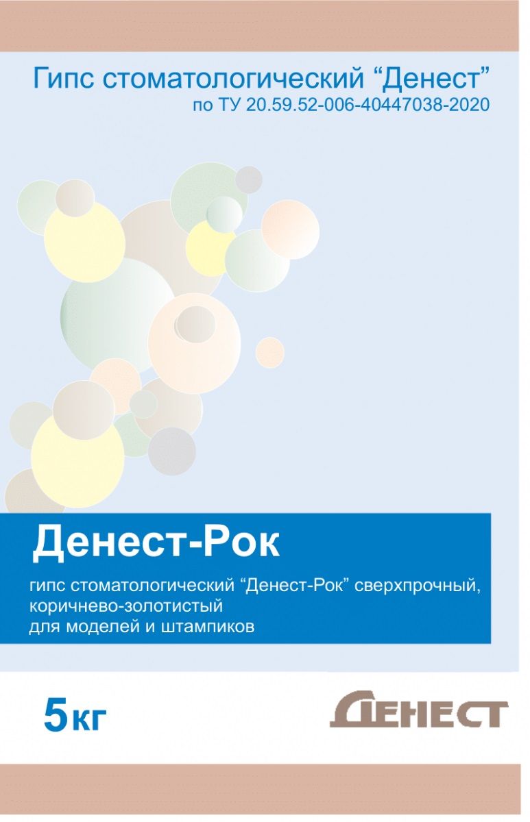 - Гипс стоматологический «ДЕНЕСТ-Рок» сверхпрочный применяется в зуботехнических лабораториях для изготовления рабочих и контрольных моделей, штампиков при несъемном протезировании. Отличается низким расширением, стойкостью к сколам и расслоению.