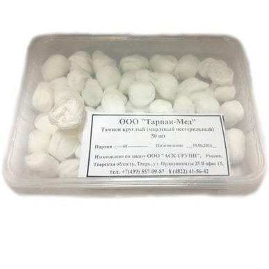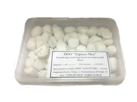 Описание: Тампоны круглые 30мм нестерильные марлевые "Тарпак-Мед", 50 шт.