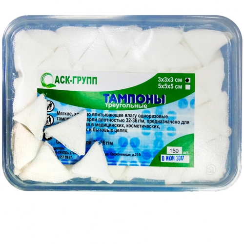 Описание: Тампоны (3х3х3см) треугольные нестерильные марлевые, 150 шт.
