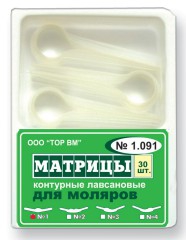 Матрицы контурные лавсановые предназначены для обеспечения оптимального контурирования пломбы. Они позволяют сократить объем шлифовальных операций после отверждения пломбы. Применяются совместно с матрицедержателями и фиксирующими клиньями для свето- и химически отверждаемых материалов. Толщина 50 - 70 мкм. Наличие 4-х форм матриц для премоляров и 4-х форм матриц для моляров позволяет практикующему врачу выбрать оптимальный тип матрицы для каждого конкретного клинического случая.