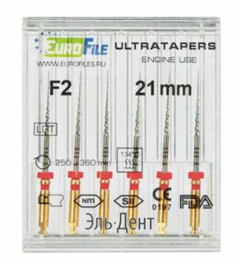 Ultratapers Engine Use F2, 21мм, машинные файлы, никель-титан, (6шт.).Eurofile