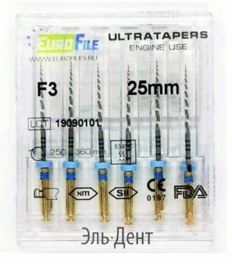 Описание: Ultratapers Engine Use F3, 25мм, машинные файлы, никель-титан, (6шт.).Eurofile