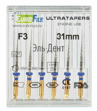 Описание: Ultratapers Engine Use F3, 31мм, машинные файлы, никель-титан, (6шт.).Eurofile