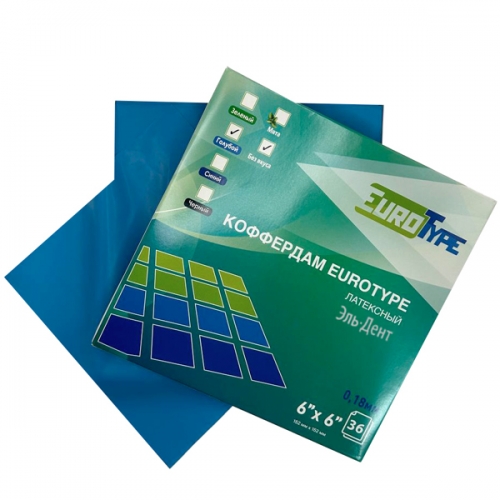 Коффердам "Eurotype" латексный, голубой/средний, без запаха (36шт.). Eurotype