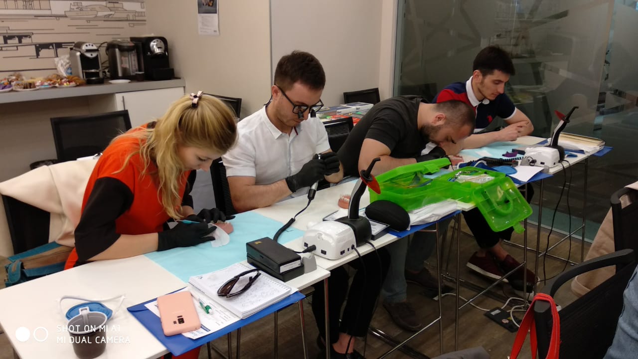 В практической части, ортопеды продемонстрировали мастерство в снятии точных оттисков, изготовлении и фиксации временного винира.
